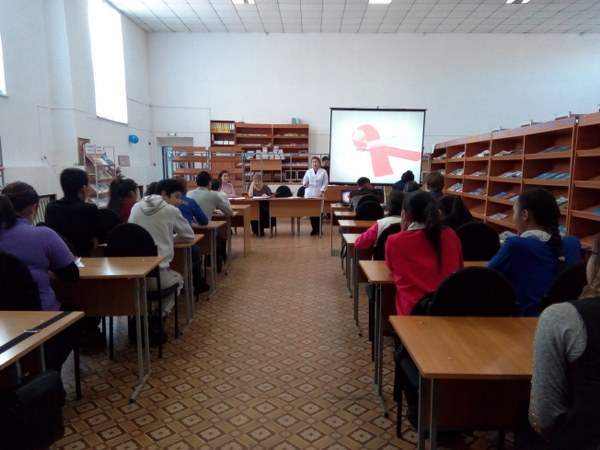 Отделением профилактики и социальной защиты населения, психологом Омаровой У.А, социальным работником Далбаевой М.А. совместно с СЭС и Молодежным центром при Акимате было проведено профилактическое мероприятие в Центральной районной библиотеке им.С.Сейфуллина, посвященное ко Всемирному Дню борьбы со СПИДом.